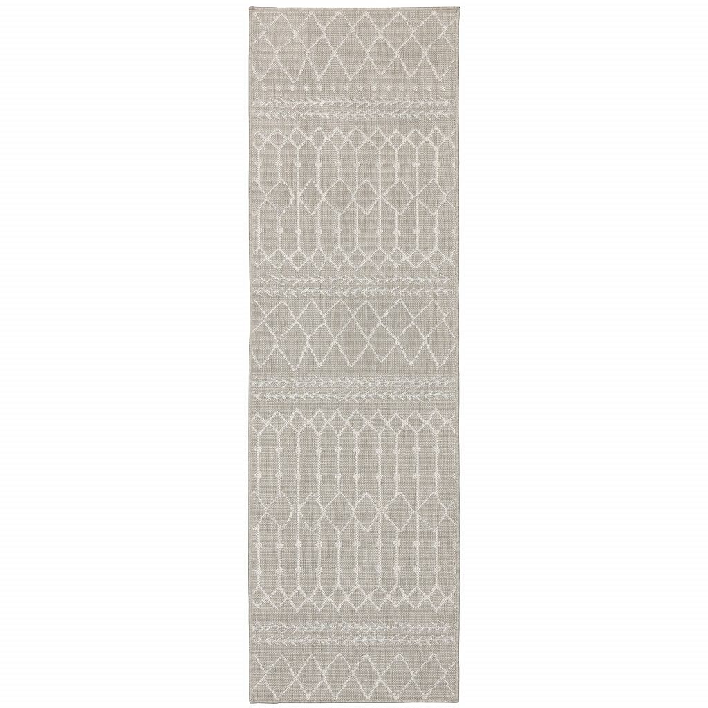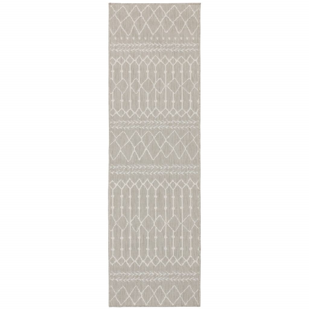 2’x7′ Gray and Ivory Geometric Indoor Outdoor Runner Rug