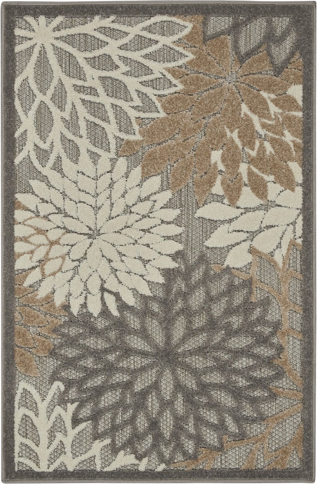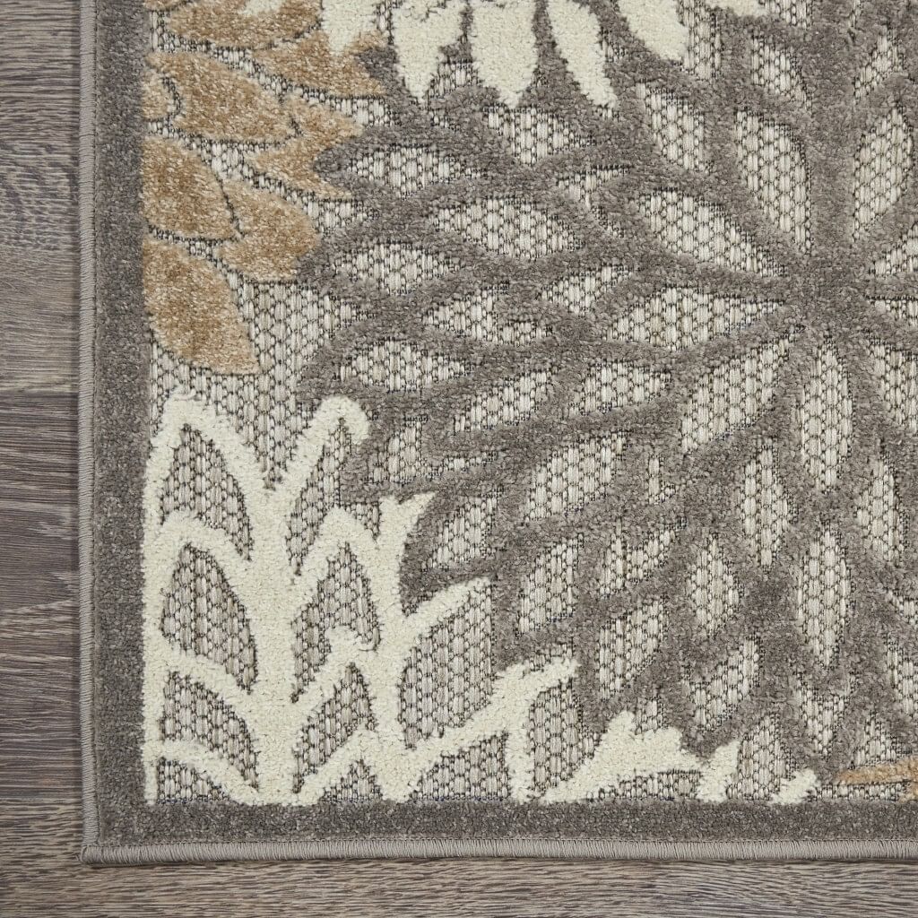 Add great coloration and comfortable texture to your space with this 3′ x 4′ gray and ivory floral indoor outdoor area rug. This rectangle shaped rug features a floral design in gray and ivory to give it visual interest. A classic shape marries with good looking design for your space Made in Turkey, this rug offers high quality combined with good looking designer sensibilities. Area Rugs help to give warmth and sense of home to your space. 1″ H x 32″ W x 48″ D
