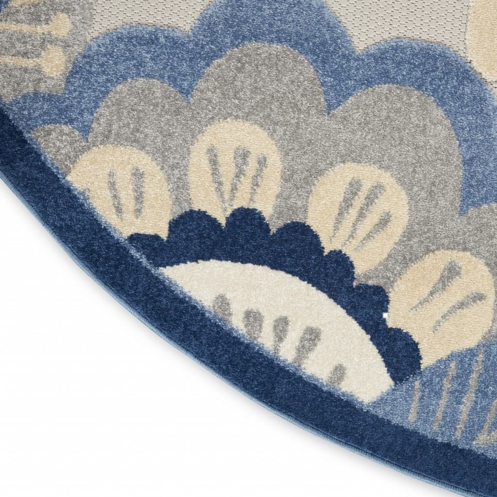 Add some artistry to your room with this 4′ round blue and gray round floral indoor outdoor area rug. This geometric round shaped rug features a floral pattern in blue and gray that combines a good looking print with a unique and updated shape. The mix of shape, color, and design gives this rug refreshing visual interest. This superior Turkish rug represents the highest quality and is built to last. Area Rugs help to give warmth and sense of home to your space. 1″ H x 48″ W x 48″ D