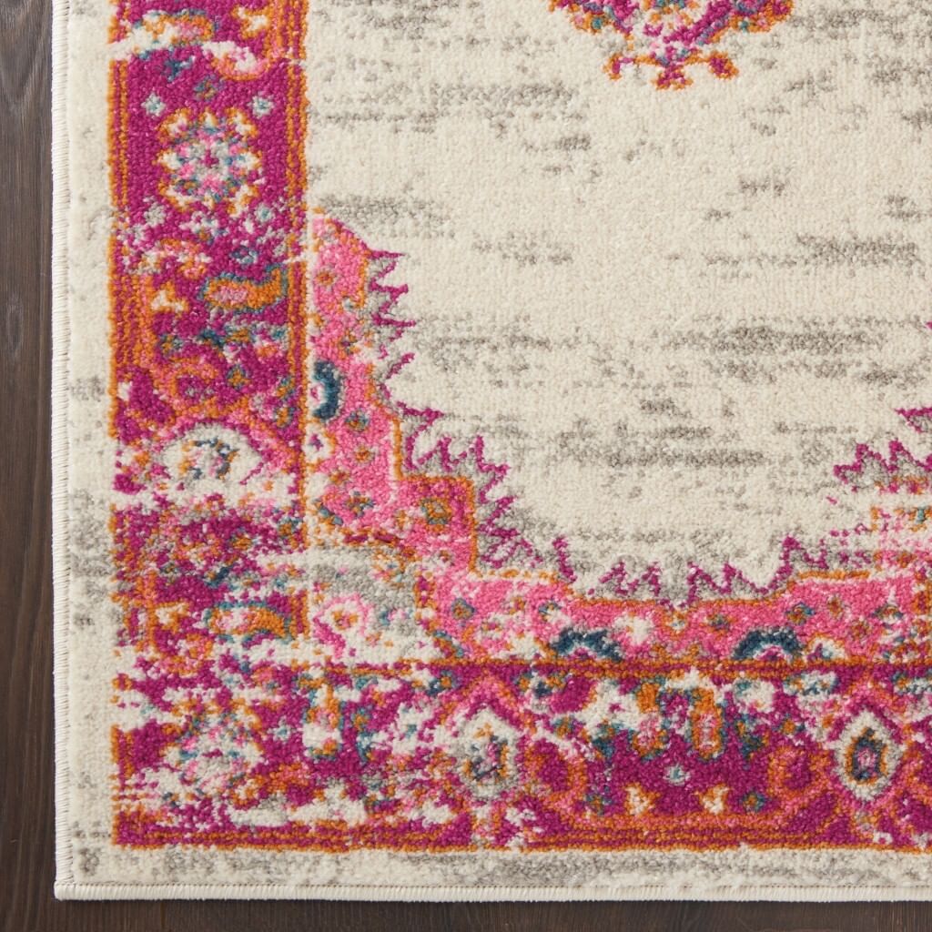 4′ x 6′ Ivory and Fuchsia Distressed Area Rug