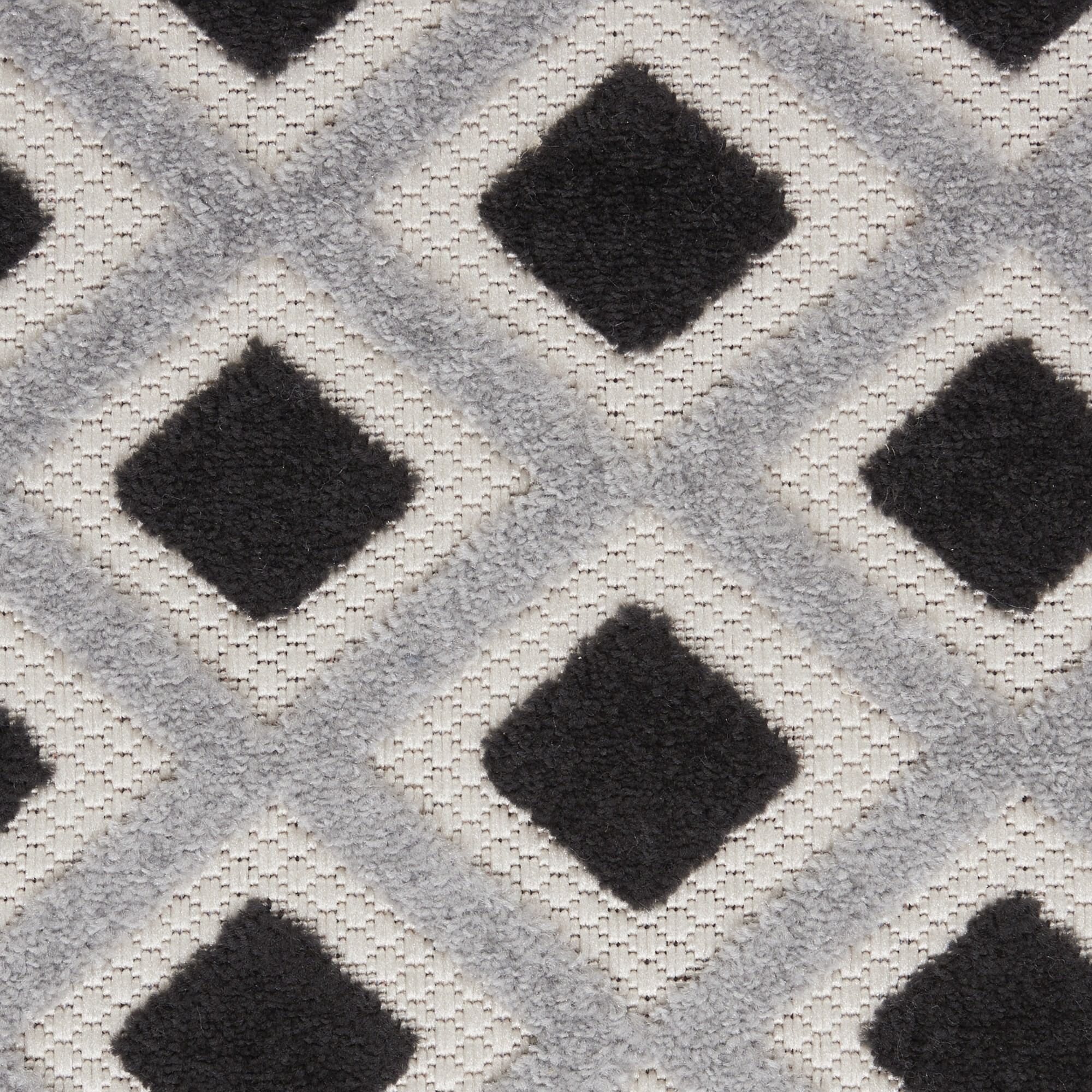 Add great coloration and comfortable texture to your space with this 5′ round black and white round geometric indoor outdoor area rug. This geometric round shaped rug features a geometric pattern in black and white that combines a good looking print with a unique and updated shape. The mix of shape, color, and design gives this rug refreshing visual interest. The coloration of this rug infuses an updated and modern vibe into your space. This superior Turkish rug represents the highest quality and is built to last. Area Rugs help to give warmth and sense of home to your space. 1″ H x 63″ W x 63″ D
