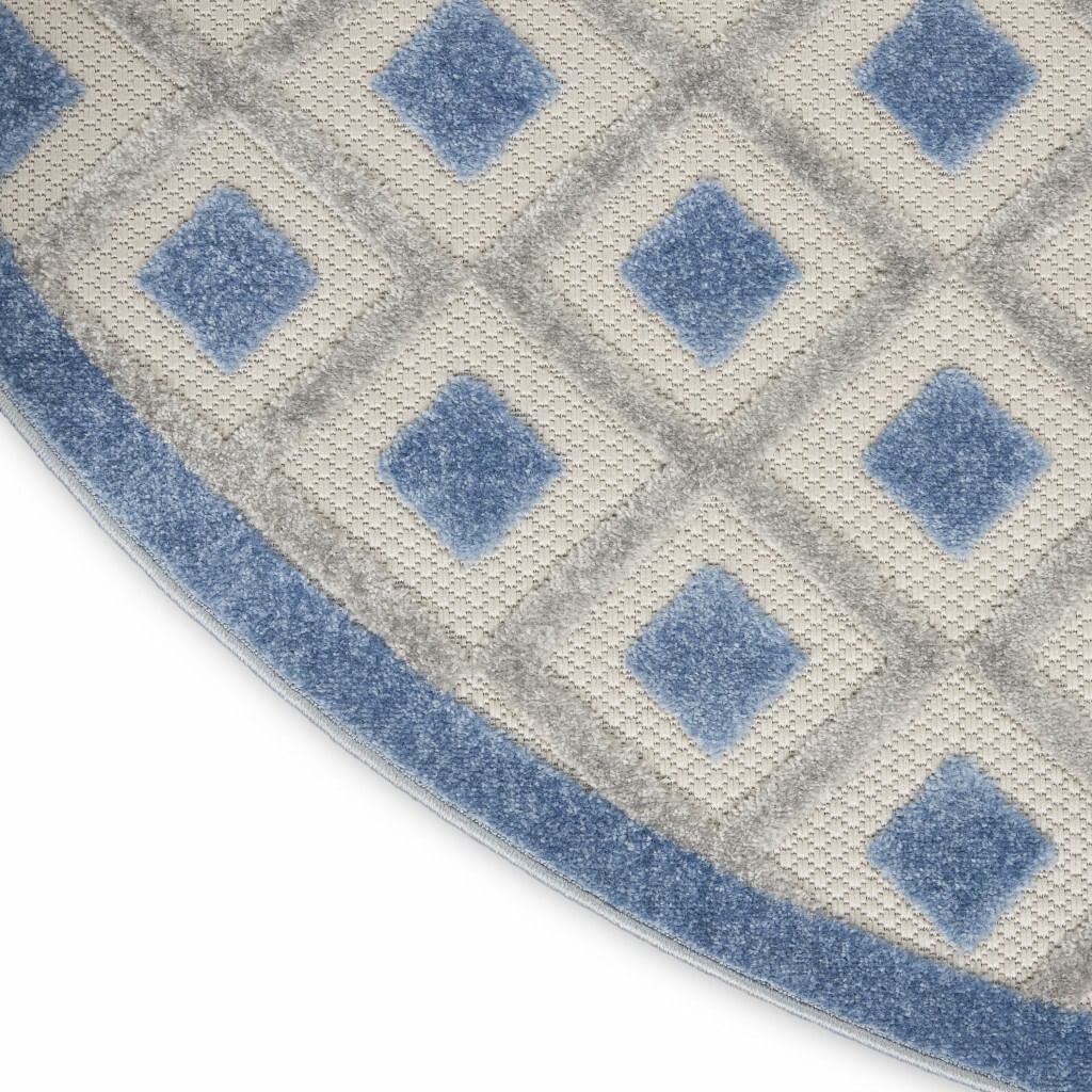 Add some artistry to your room with this 5′ round blue and gray round geometric indoor outdoor area rug. This geometric round shaped rug features a geometric pattern in blue and gray that combines a good looking print with a unique and updated shape. The mix of shape, color, and design gives this rug refreshing visual interest. This superior Turkish rug represents the highest quality and is built to last. Area Rugs help to give warmth and sense of home to your space. 1″ H x 63″ W x 63″ D