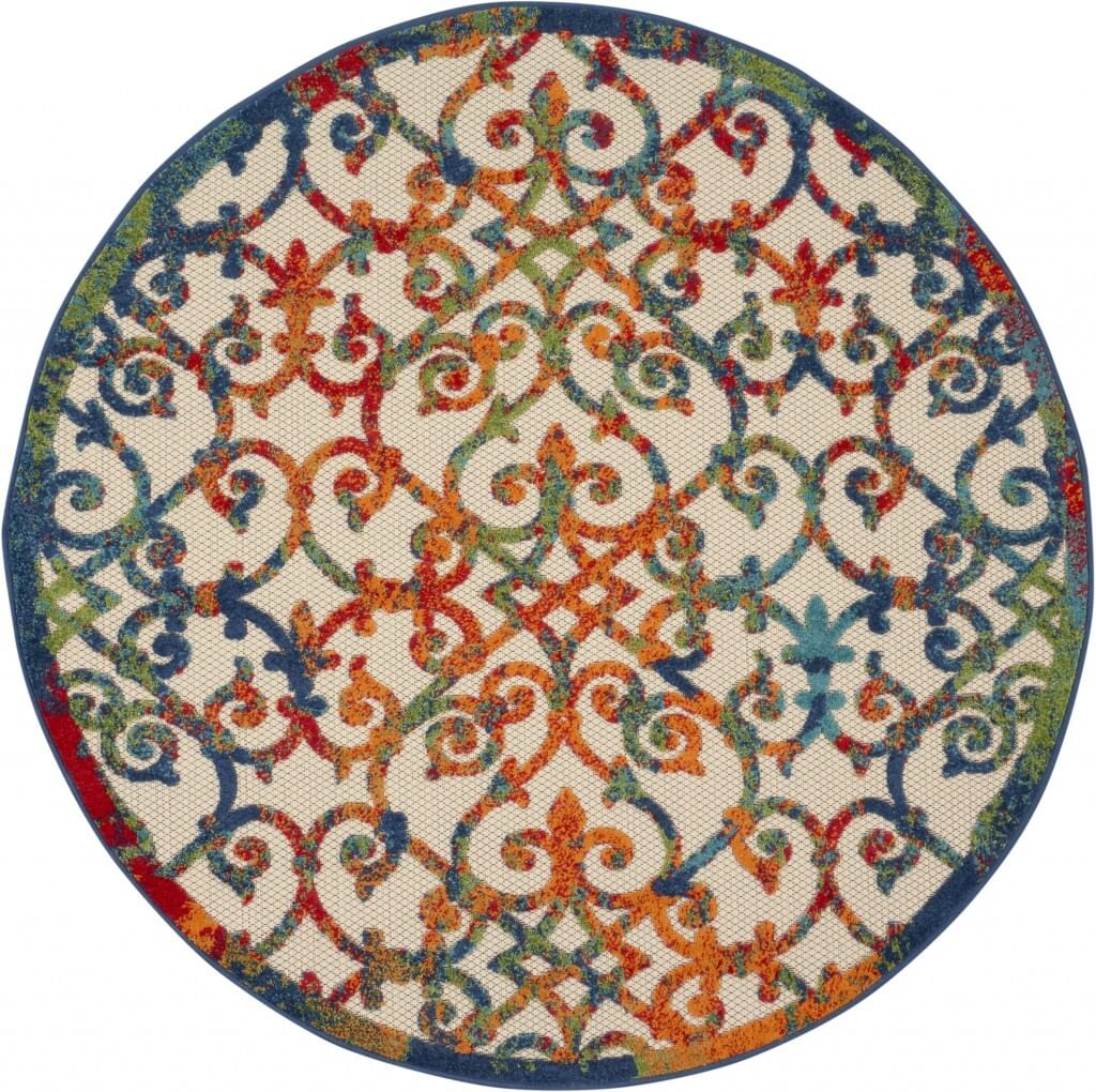 4′ Round Rainbow Colored Indoor Outdoor Area Rug